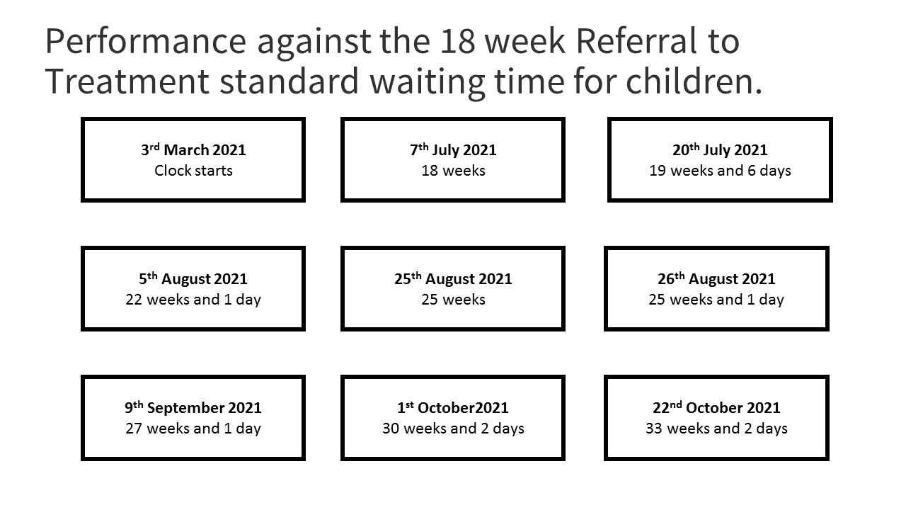 NHS Planning Guidance includes wheelchairs. It is expected that CCGs will achieve 92% in relation to the 18 week Referral to Treatment standard waiting time for children. This has been reduced from the previous 100% following feedback from key stakeholders and a review of the target. NHS England is holding CCGs to account for performance against this target through the